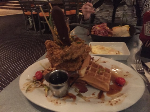 would work. My mom is a fan of down home basics, often with an italian flair – but basic american food works too. And thats that they do well here, hearty portioned and solid foods. While she went easy with eggs, the corned beef hash ( you actually get to choose from 4 types of hash including a vegetarian one), eggs over great potatoes. I opted for my general favorite the Friend chicken breasts and waffles (umm and by they way thats two breasts and 4 waffles – so be hungry or ready to share.) As expected the food was good – not overly spiced so most tastes will find it mild and may need a bit of hot sauce to heat it up. Portions are hearty as I mentioned above. Over all, given its in a casino attached to an arena – one of several good food finds!