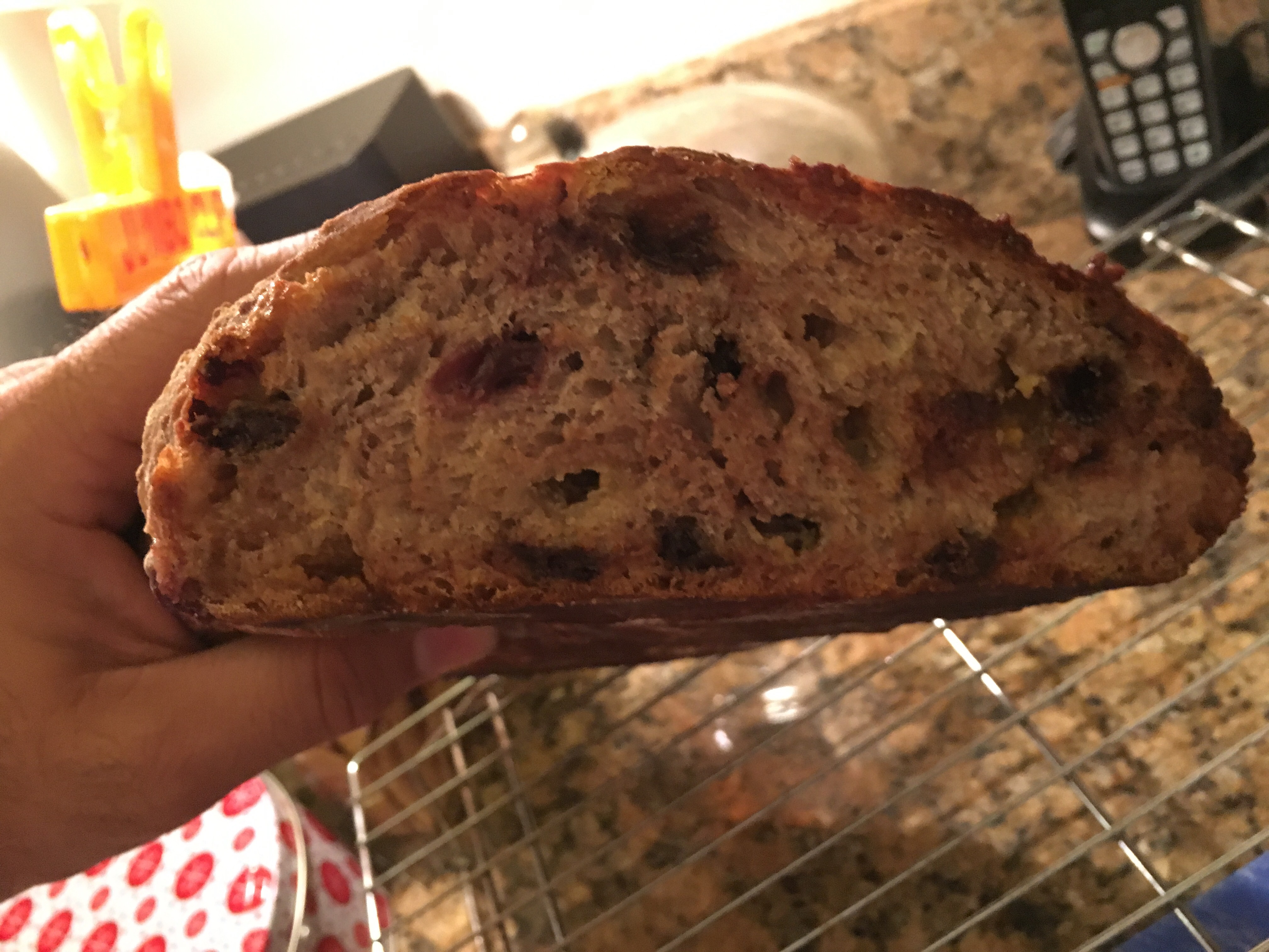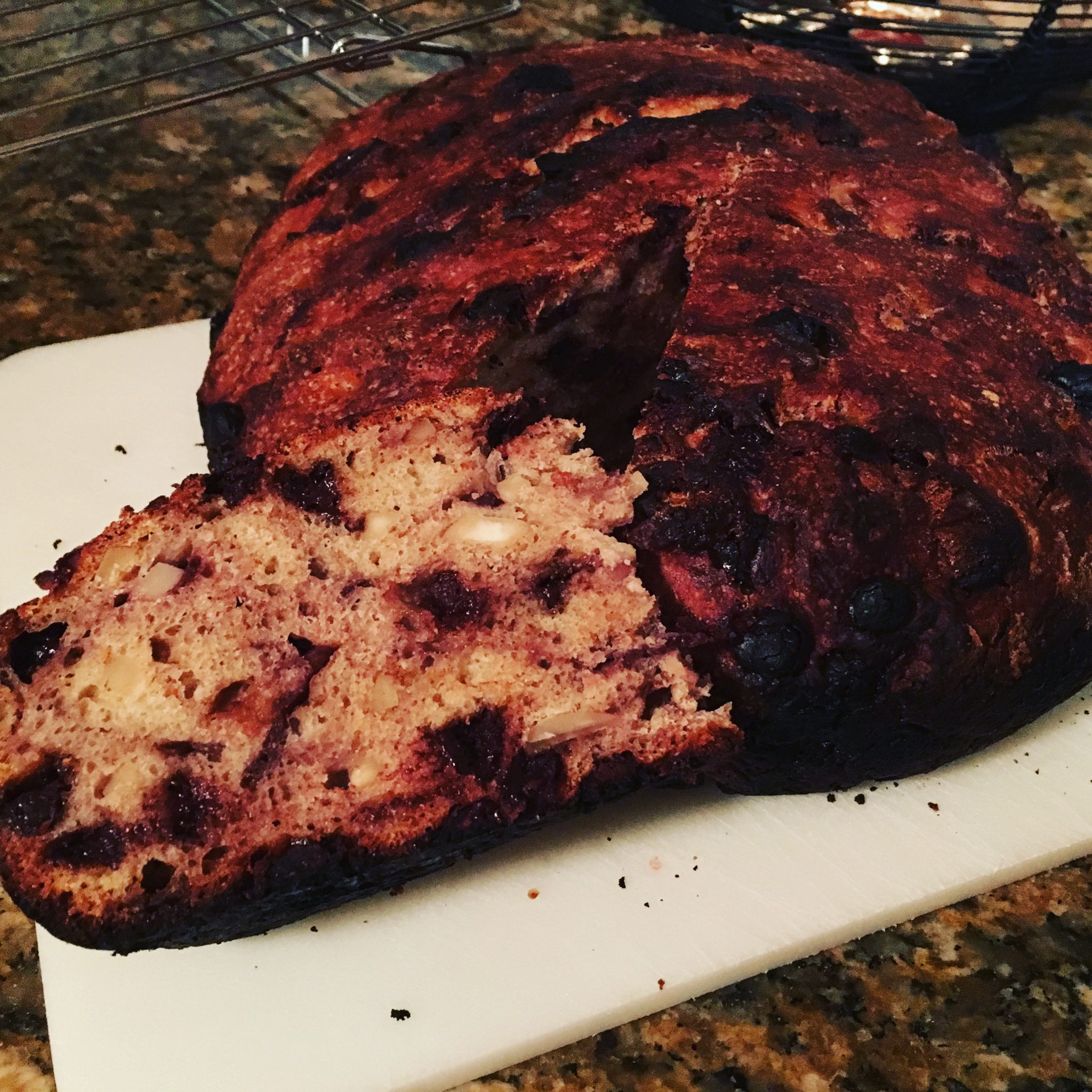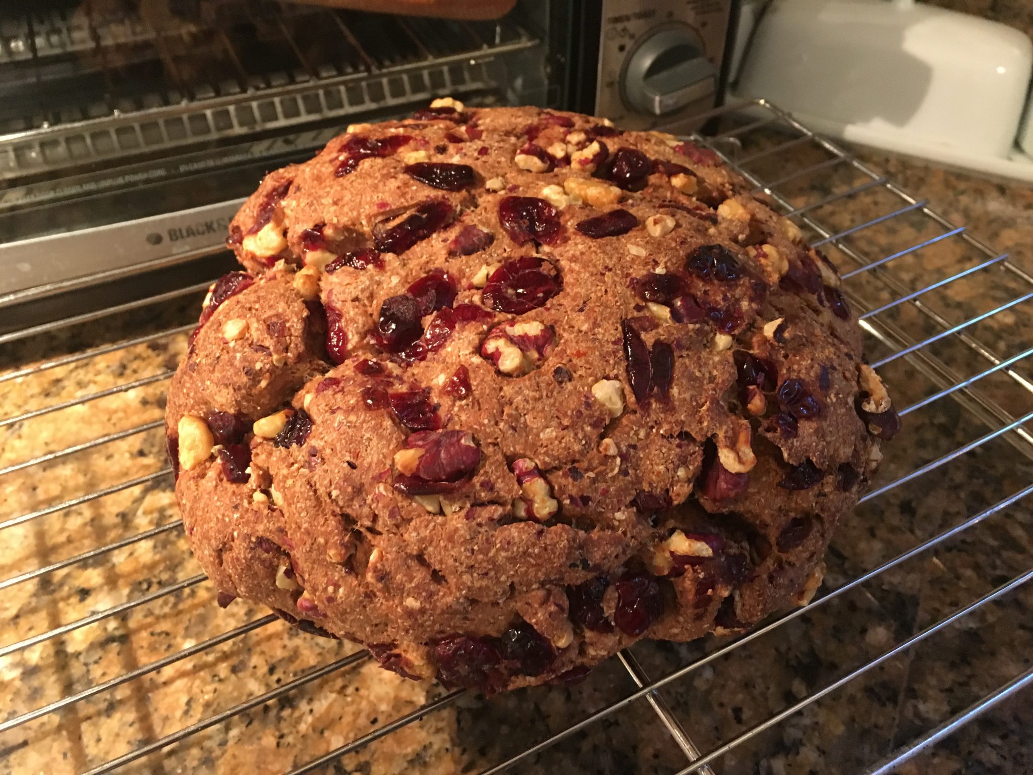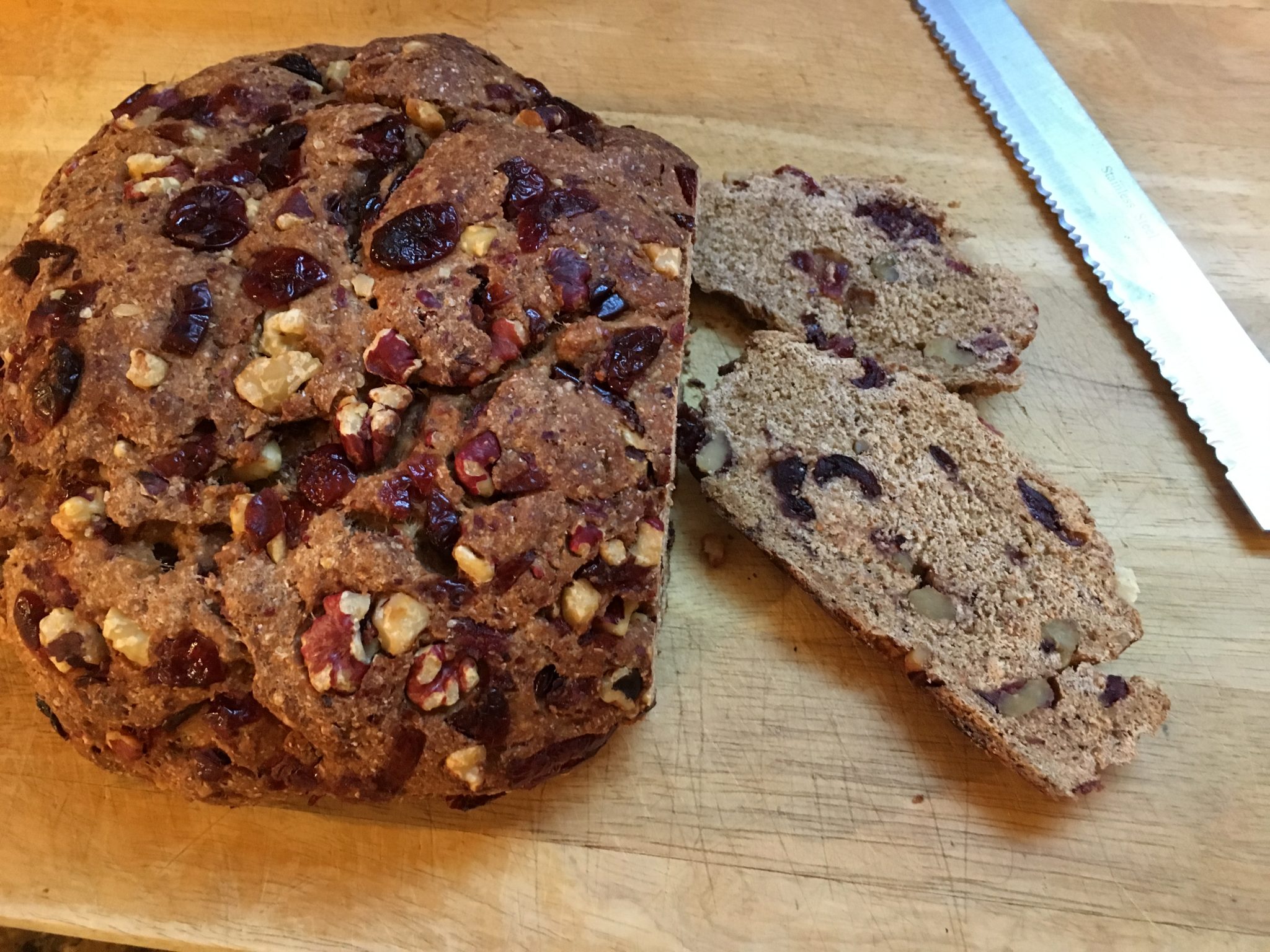 Then for our monthly bookclub – I redid the one from May 5th (Chocolate Chip Cherry Bread)  and also tried a whole wheat bread with cranberries and walnuts. Both to some success. The whole wheat was dense -but perfect with cheese or a soup. The other was screaming for sweet butter or to be put in bread pudding or fresh toast !