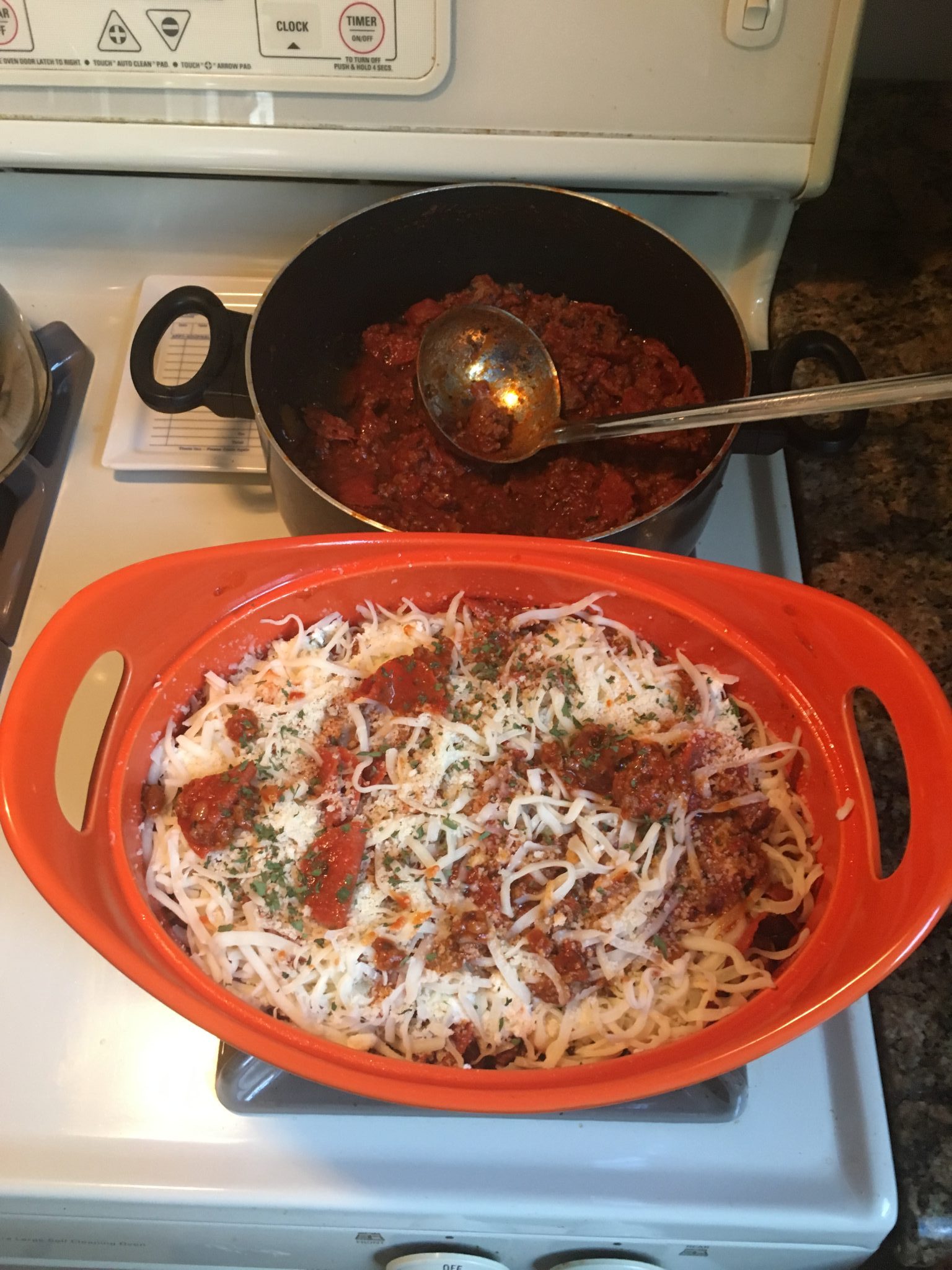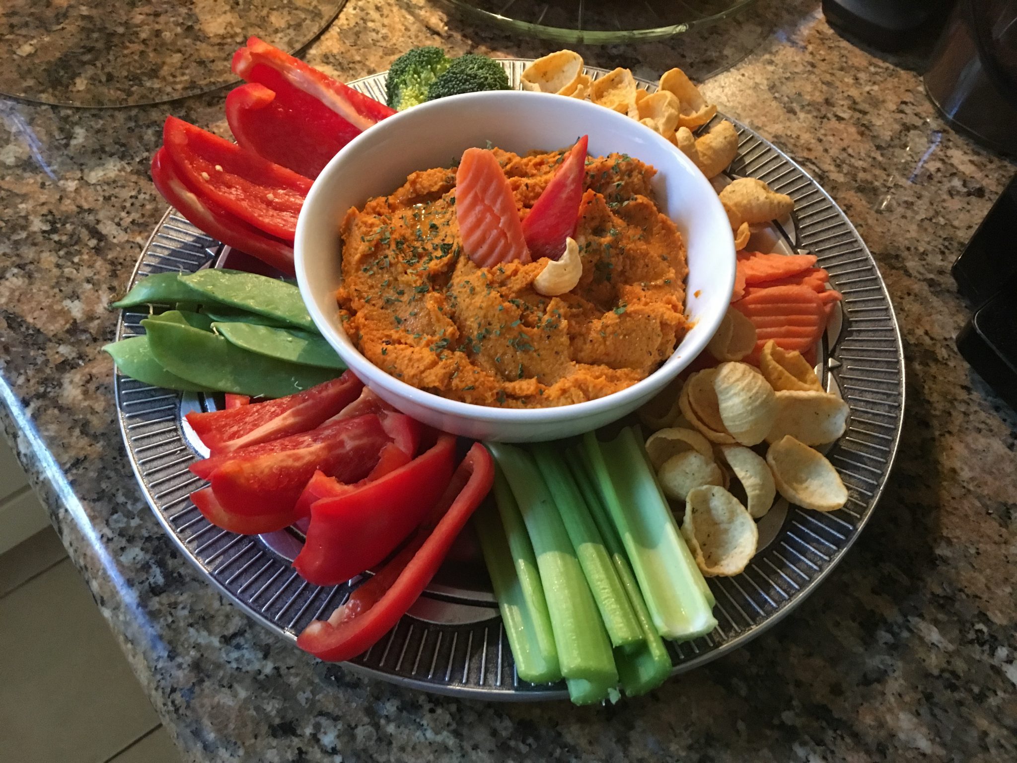 With this in mind, I thought it would be fun to recreate a home version, but that wasn’t the old school all day sauce version that I normally would make , which I know he loves. So Trisha Yearwood’s “Cowboy Lasagna” recipe came to mind. I originally tried the recipe back in a few months ago (that post is here) after seeing it on her cooking show to a great success. I recall saying that the mean-sauce was like “crack”, “one spoonful and you couldn’t stop tasting it”. To start the night I re-used another favorite starter; my adapted version of Roasted Carrot Hummus that I have mentioned back in my February post