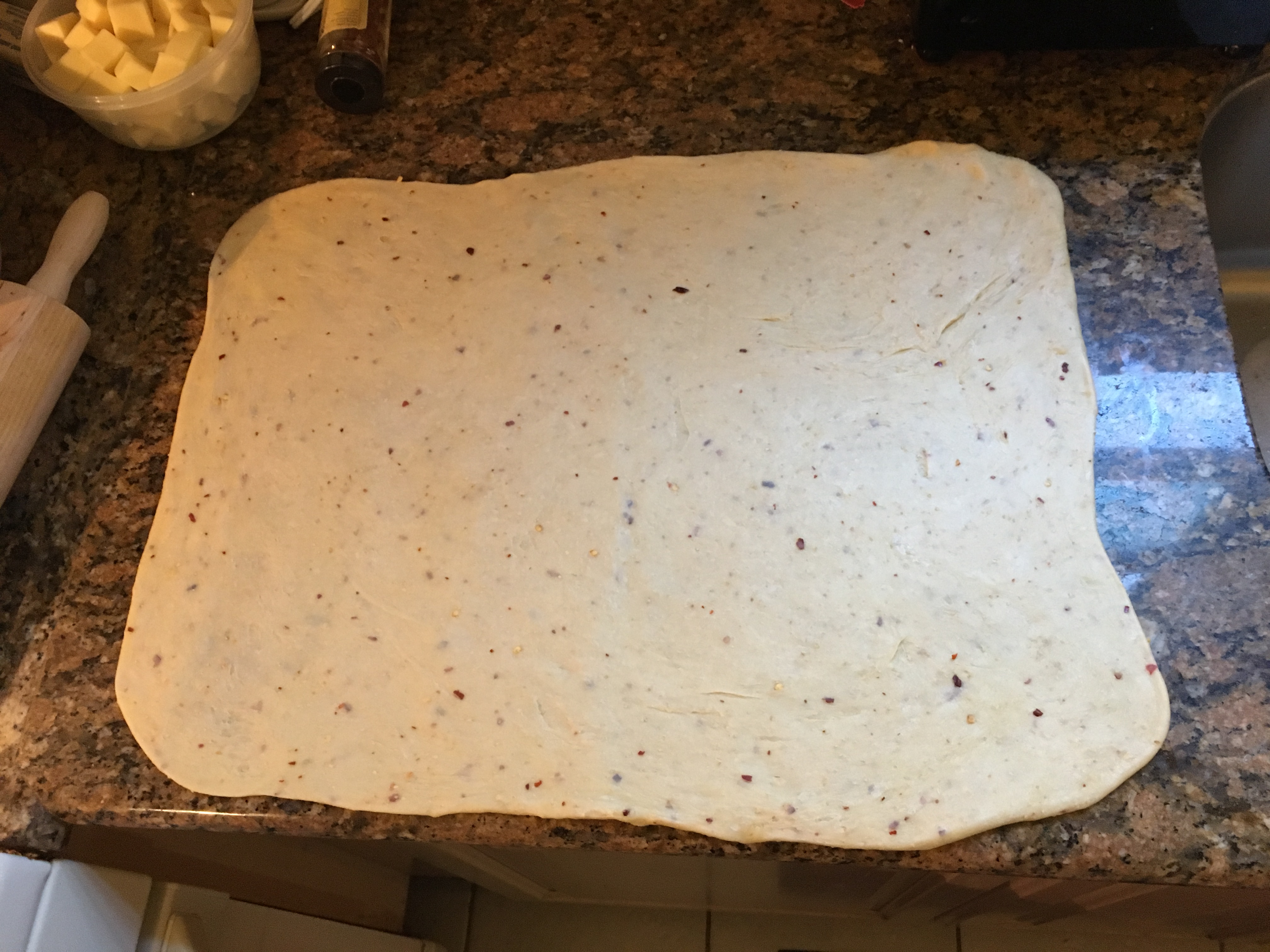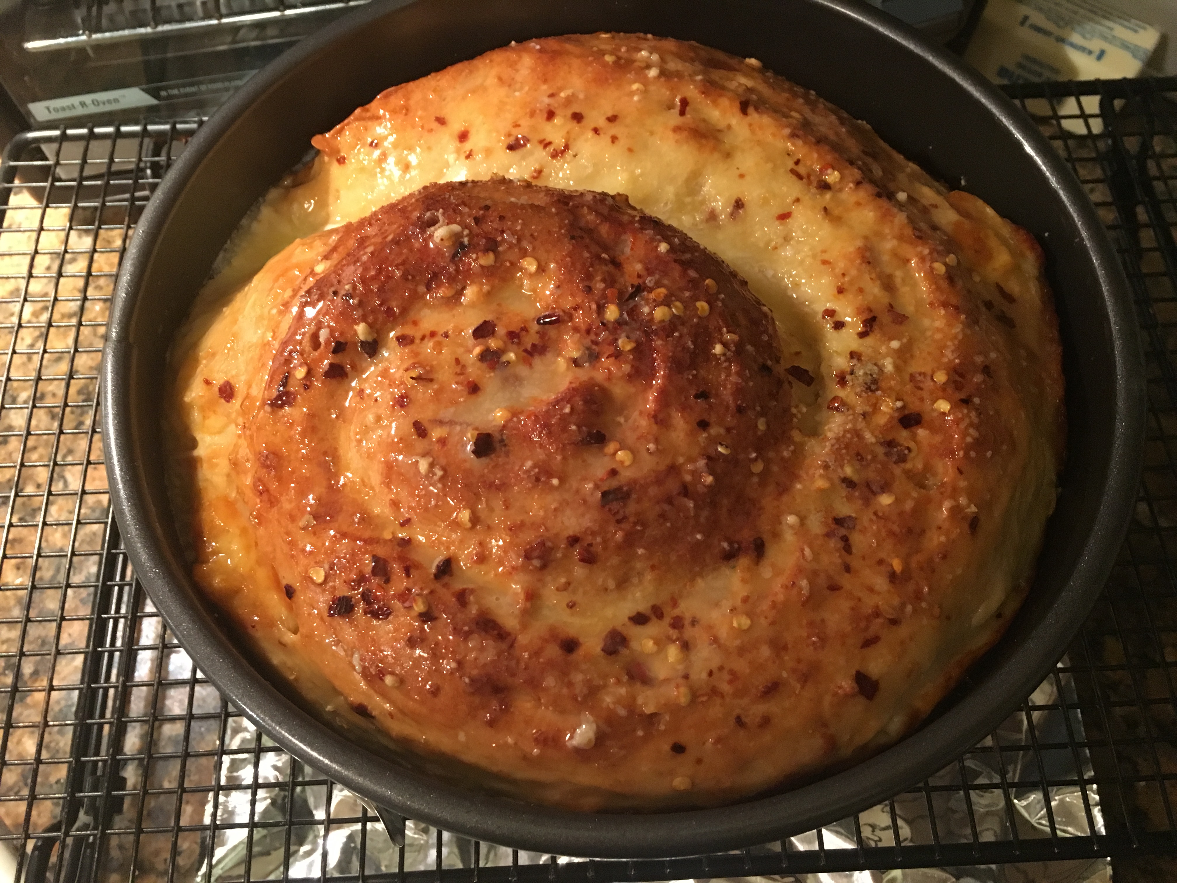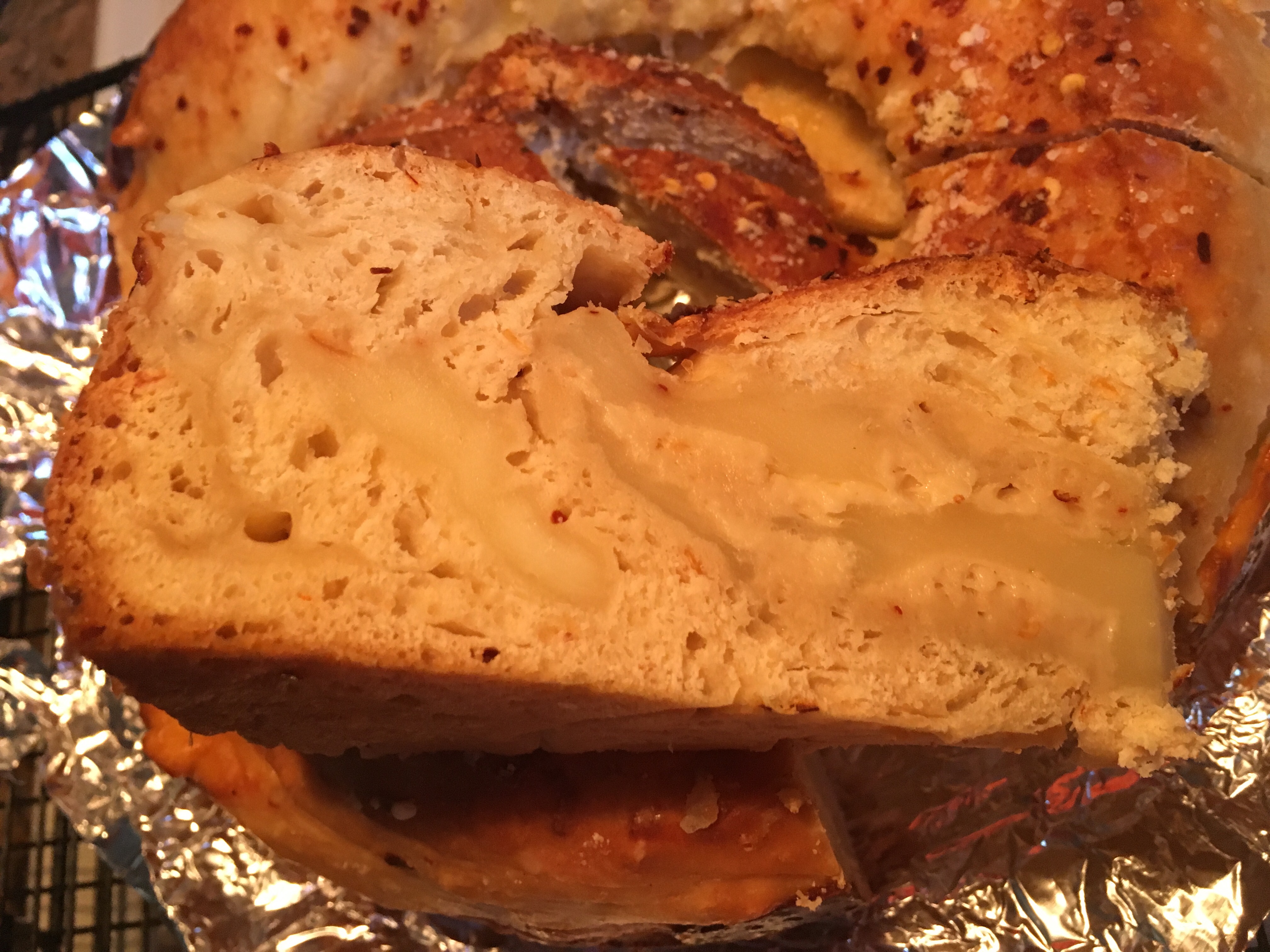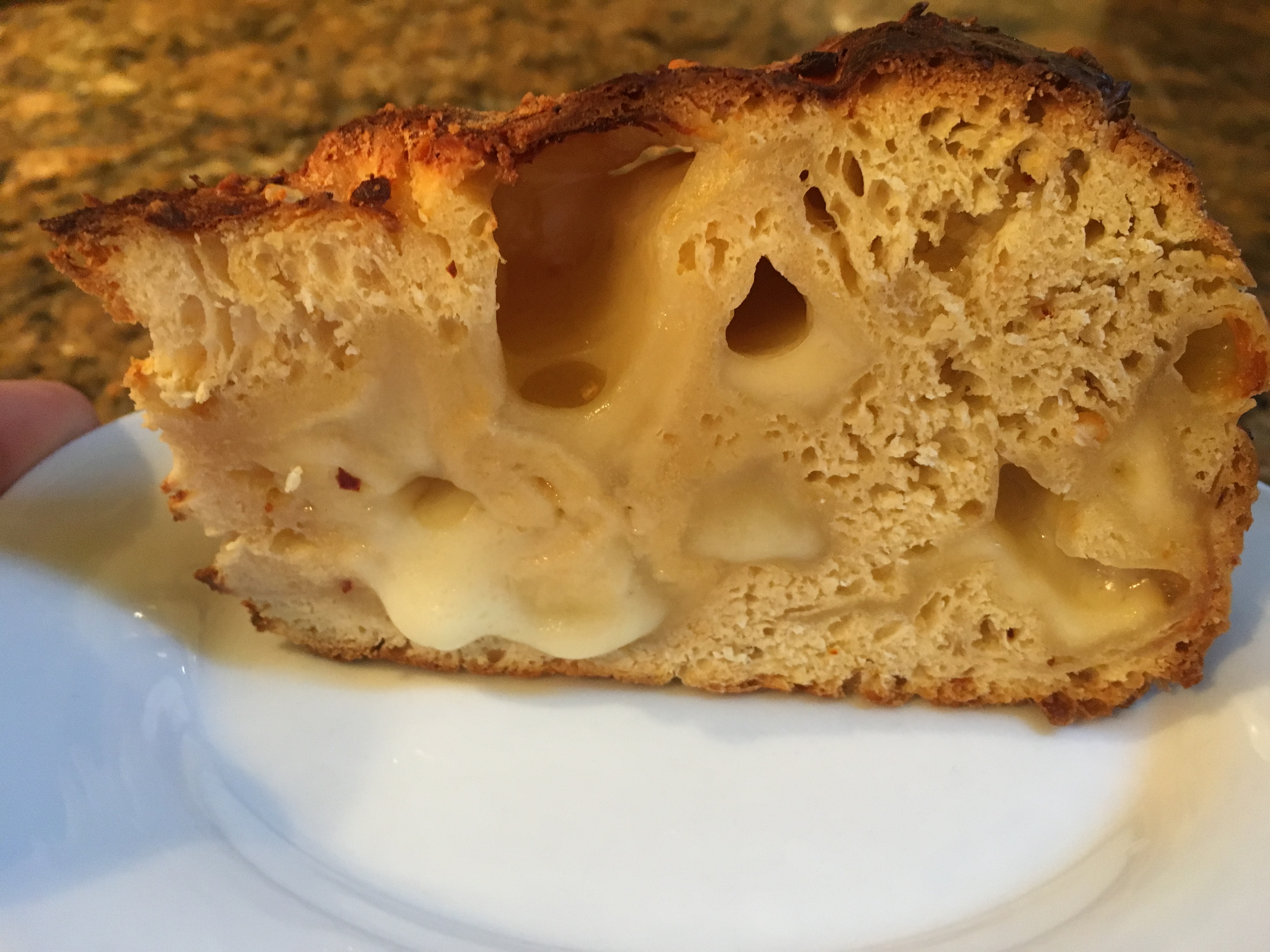 The recipe wasn’t as hard as I anticipated. Don’t get too nervous about the amount of red pepper either – you really need it to balance with cheeses. Note: this bread reheats really well and I can tell on its own or alongside a hearty stew it’s a keeper. My next plan is to play with the recipe and add cooked off diced prosciutto or sausage!