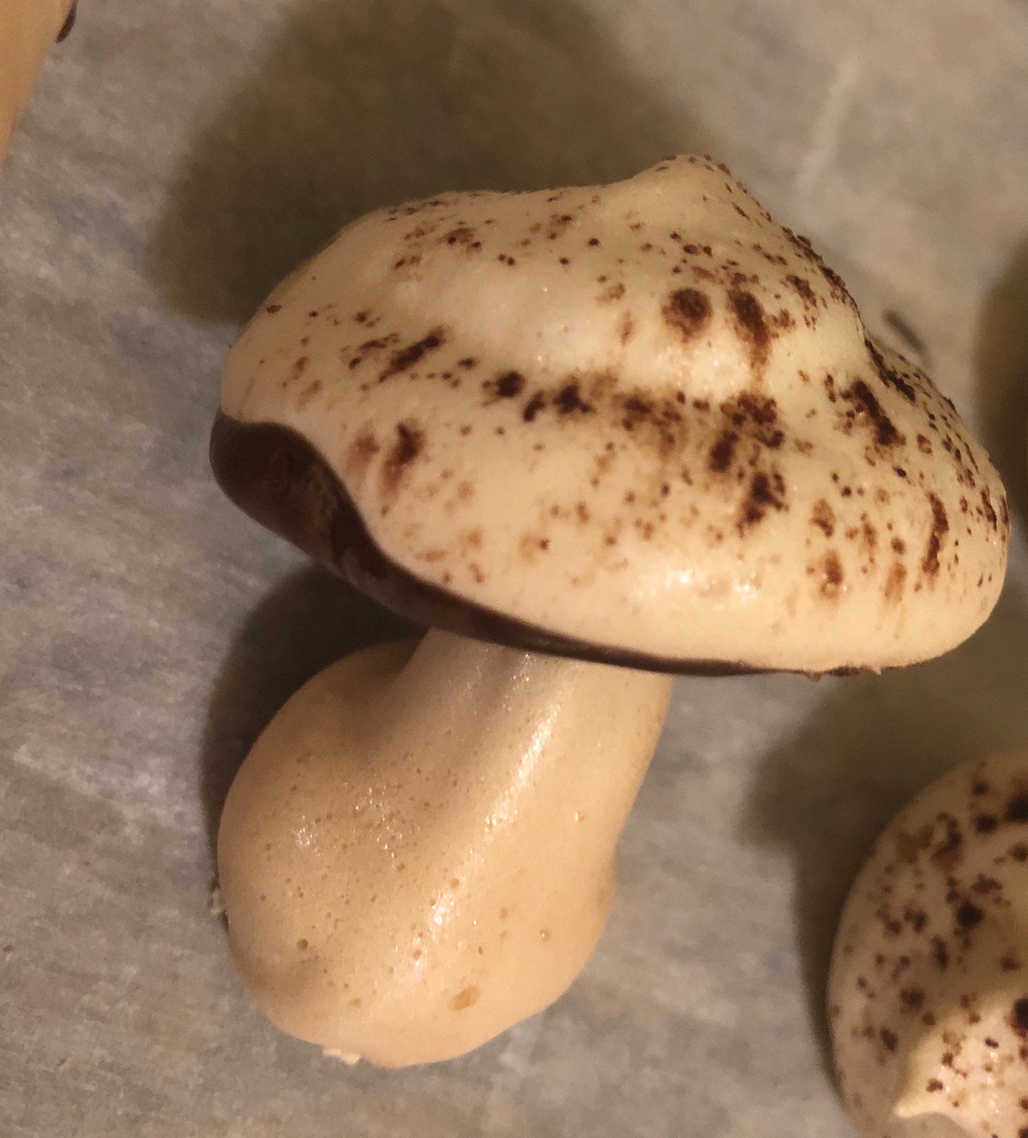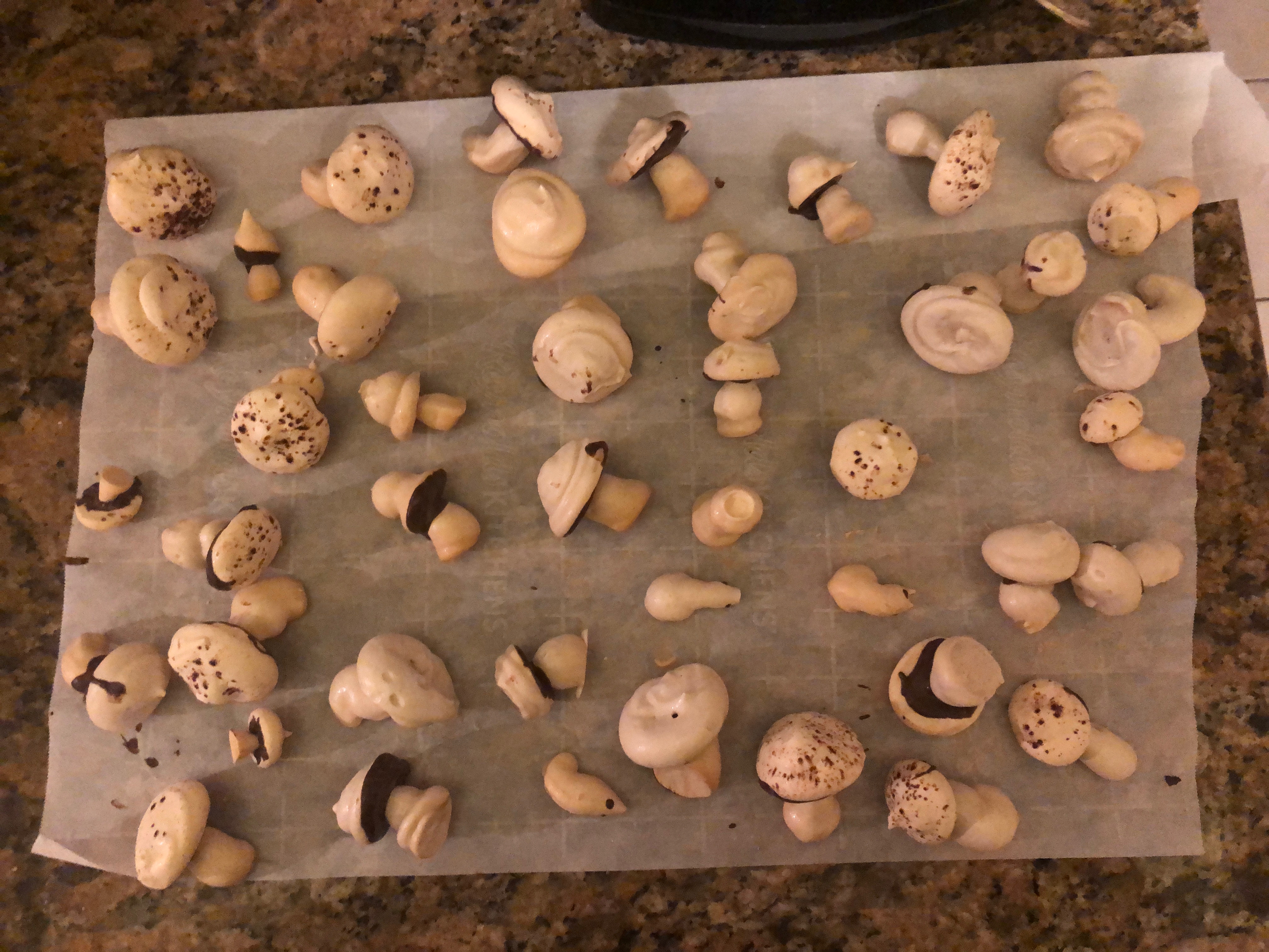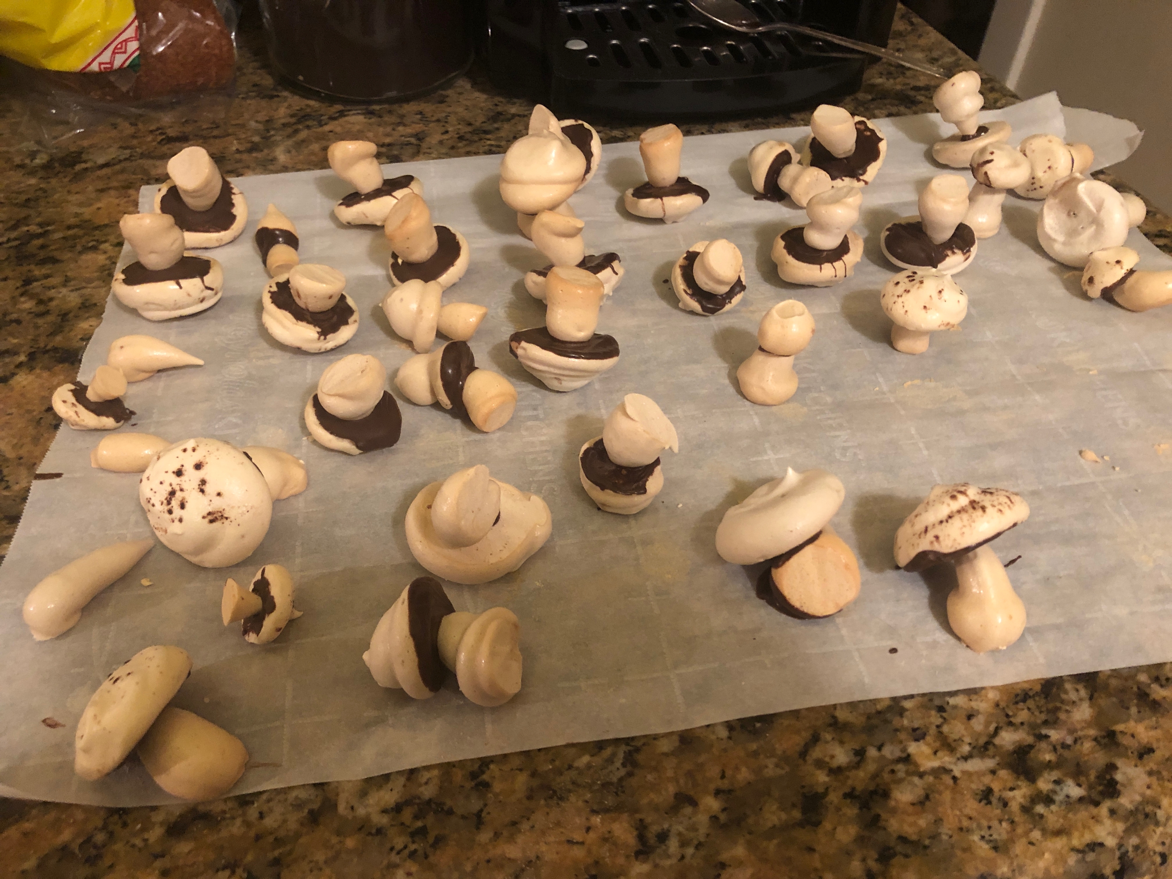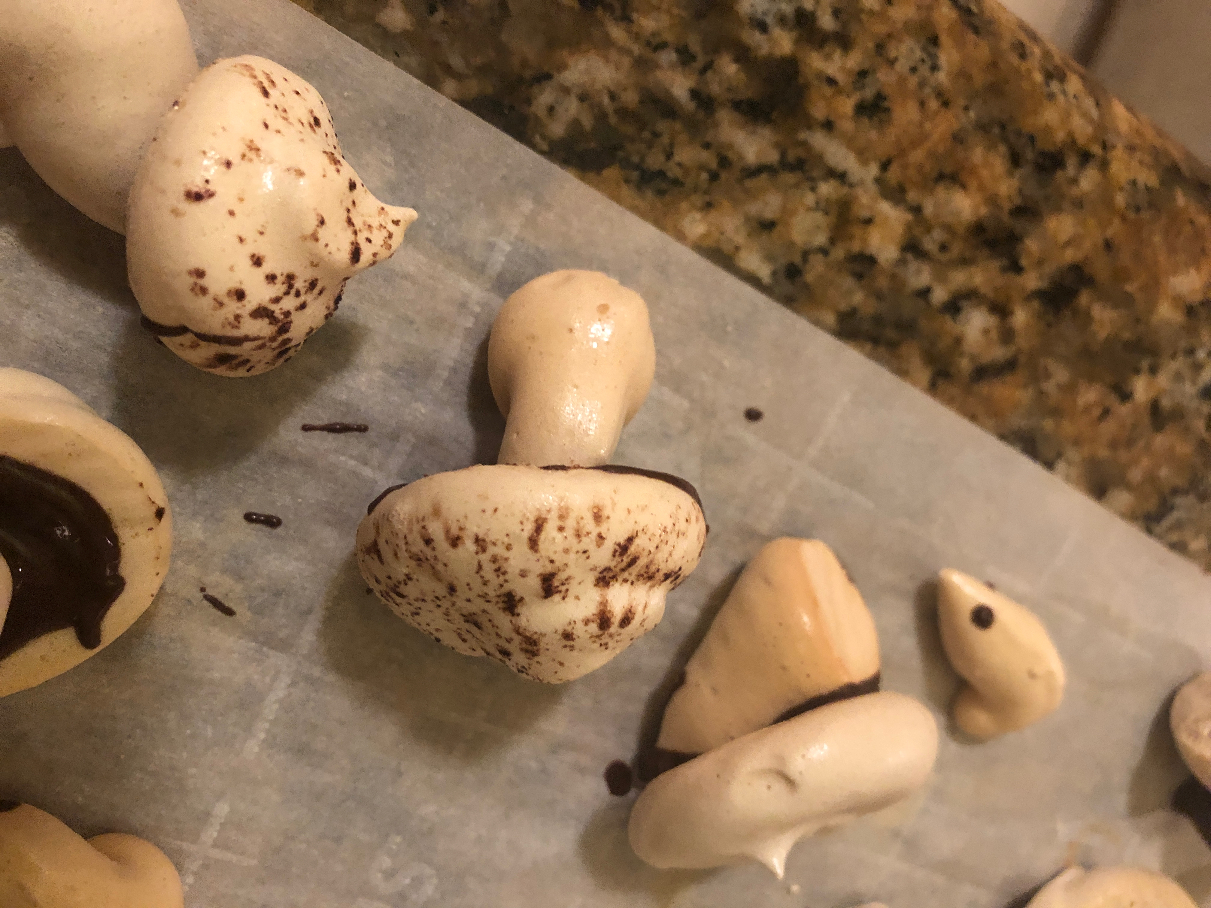 I also whipped up some meringue mushrooms the night before. But make sure to store them in an airtight container to keep them hard.