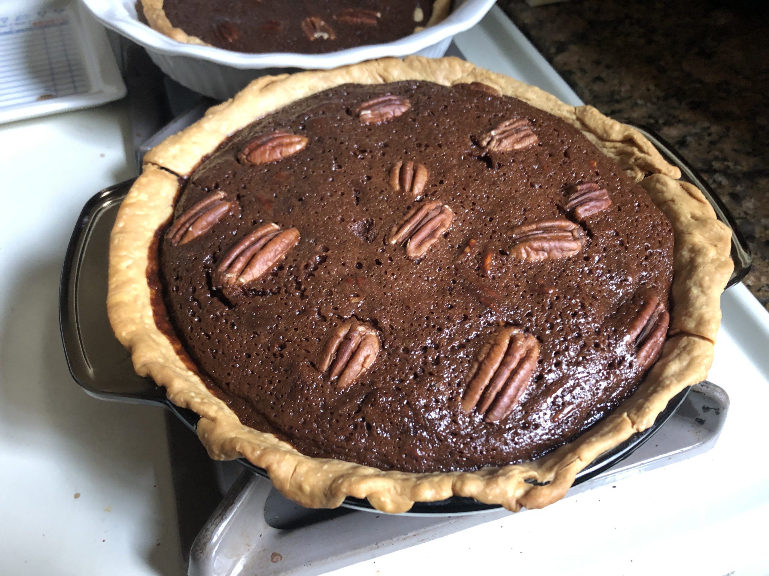 – Made one chocolate pecan pie,