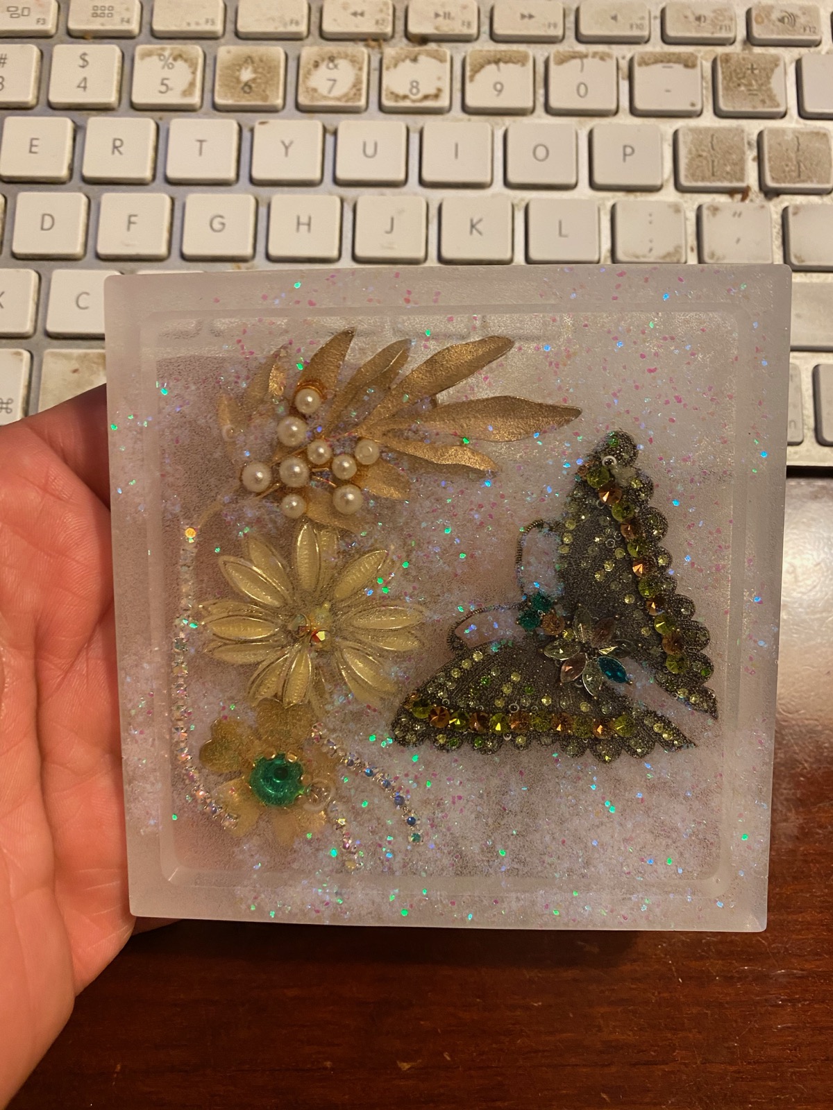 For the background in how I reuse old previously loved, broken and vintage jewelry and the gaudy baubles box visit: https://bitetheroad.com/dec2019recap/