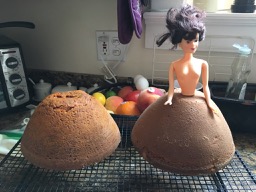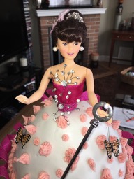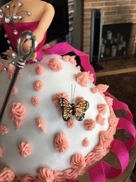 I decided to attempt a retro “Princess Cake”, with a marshmallow fondant, as the dress base for the “pretty outside” covering what the story ultimately illustrates is the more complex and rich inner core. In this case, a cherry–almond nut cake. Ok now shopping for this, I did notice that my bags looked like I had 10-year-old girls at home… but I digress