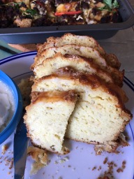 In the advent that she didn’t come out, I also knocked out one of my favorite adapted recipes from Martha Stewart for a quick Cheddar Bread. Today’s version had two other kinds of diced cheese and was laced with ground pepper, garlic powder, and herbs to give it a nice savory taste with brunch. topped with some honey-herbed butter – we were packed and ready to walk down to the Castro!